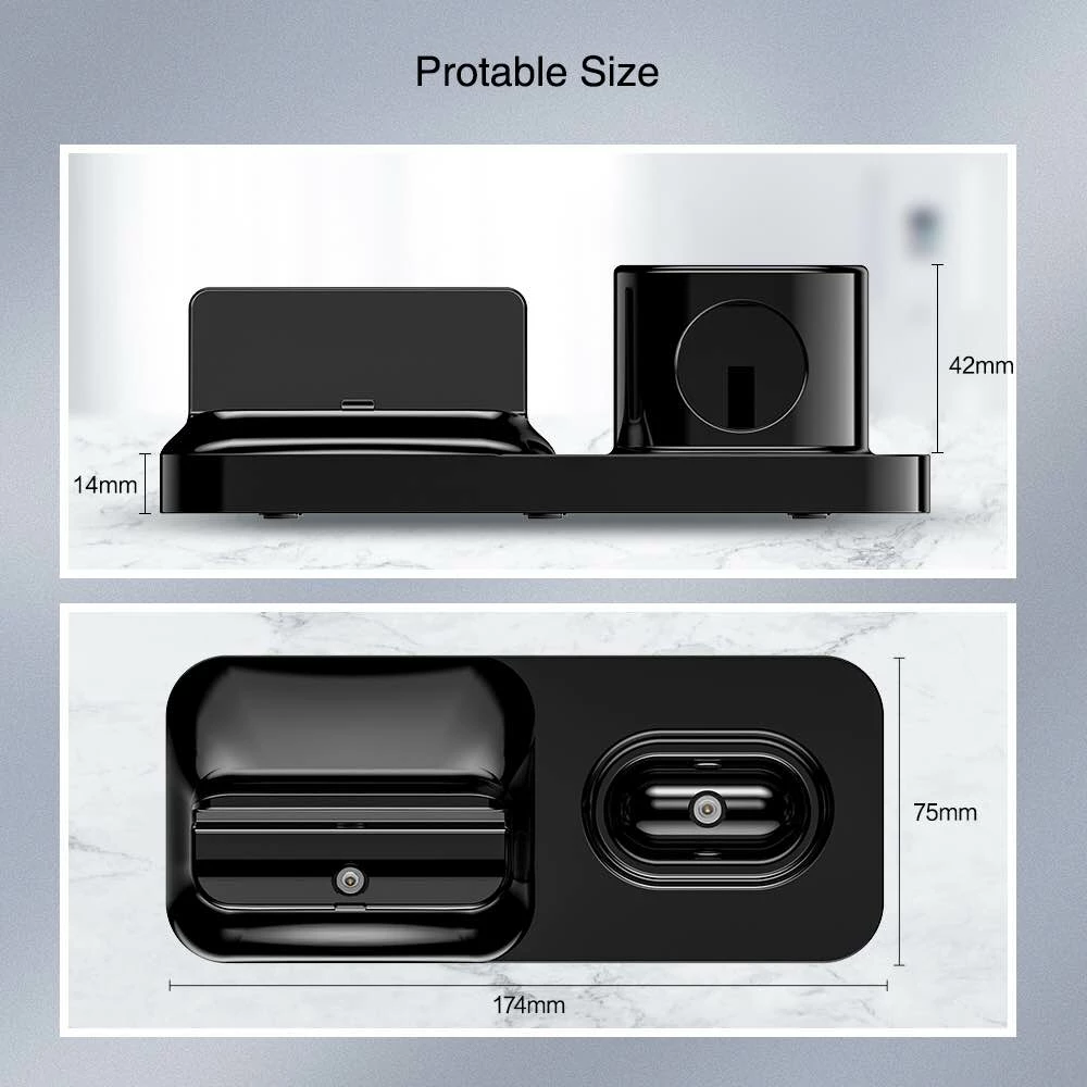 A new innovative device for all mobile phones and tablets. Charge devices from the comfort of home or office without a need for wires. Compatible with USB cord on iPhone models. Wireless Charger Dock 10W Wireless Charging Station Qi Fast Wireless Charger. Magnetic charger dock for iphone, air pod and apple watch. Devices not included.