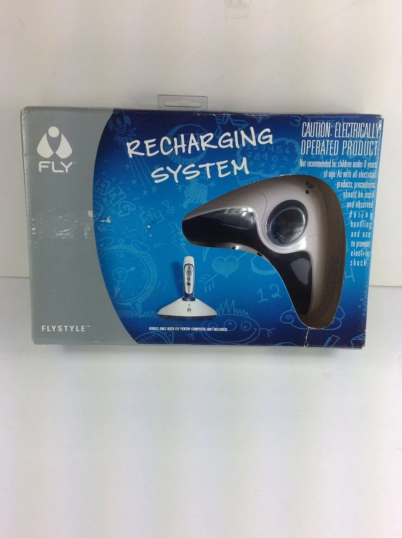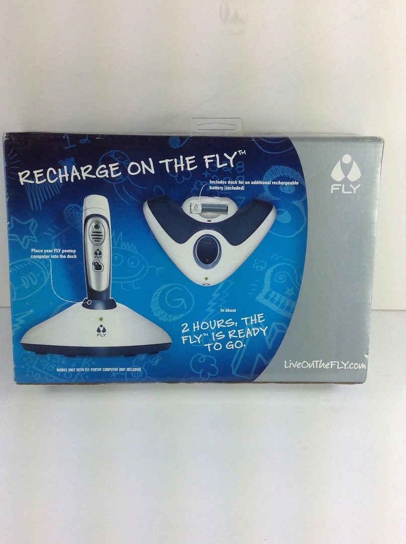 Fly Pentop 1.0 recharging system Flystyle 37710 works with Fly Pentop Computer, packaging shows light shelf wear factory sealed inside rechargeable batteries are sealed as well, comes with pen and case unsealed but in excellent condition. 12 x 8 x 3