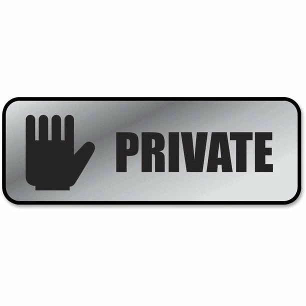 Private Sign displays the message next to an image that clearly represents the message. Metallic background features a great look and bold letters. Included mounting pads provide a quick and easy way to mount the sign in a convenient location.