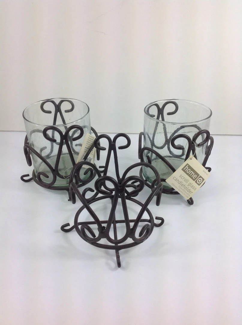 SCROLL GLASS CANDLEHOLDER 5.3 in X 5.3 in X 4.3 in.