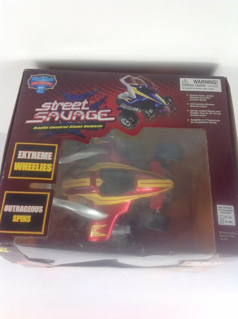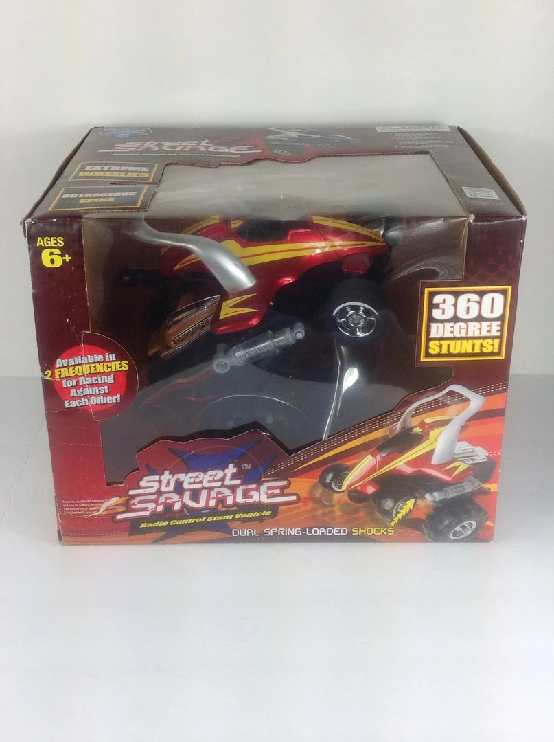 Fuel Your Child’s Need For Speed! Fasten your seatbelts and put the pedal to the metal with the Sharper Image RC Street Savage Stunt Car! This small yet mighty remote-control toy car features all the coolest tricks that’s sure to leave children breathless! Action Packed Features That’ll Wow The Crowd! Perform 360-degree spins, wild wheelies, sharp corner turns, and much more with the Street Savage’s spring-loaded shocks while the knobby tires grip onto all sorts of terrain for easier driving/navigation. A full function wireless remote control offers a multi-directional operation complete with two types of radio frequencies for competitive racing with another friend’s RC vehicle. Quality You Trust The Sharper Image RC Street Savage Stunt Car is one remote control toy built for speed, durability, and high performance in a compact design! It’s the perfect gift for that special someone in your life and delivers long-lasting top notch results to boot.ย