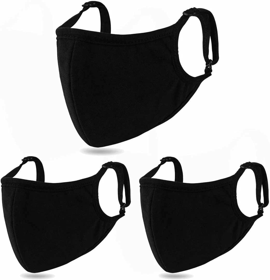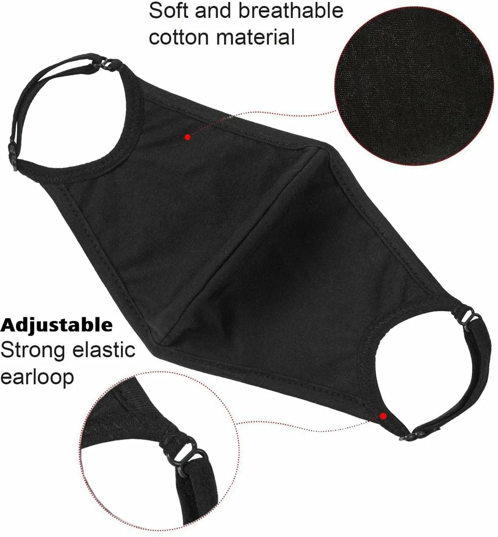100% Cotton Unisex face mask with nose bridge wire. Adjustable straps loops. 3 pcs Black with white interior.Â
